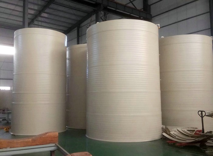 4、加工需要采用鋼制模具,在加工前需要采用天然氣預(yù)熱,開機(jī)成本大,PP貯槽直接采用聚丙烯板材卷成罐體,成本??;